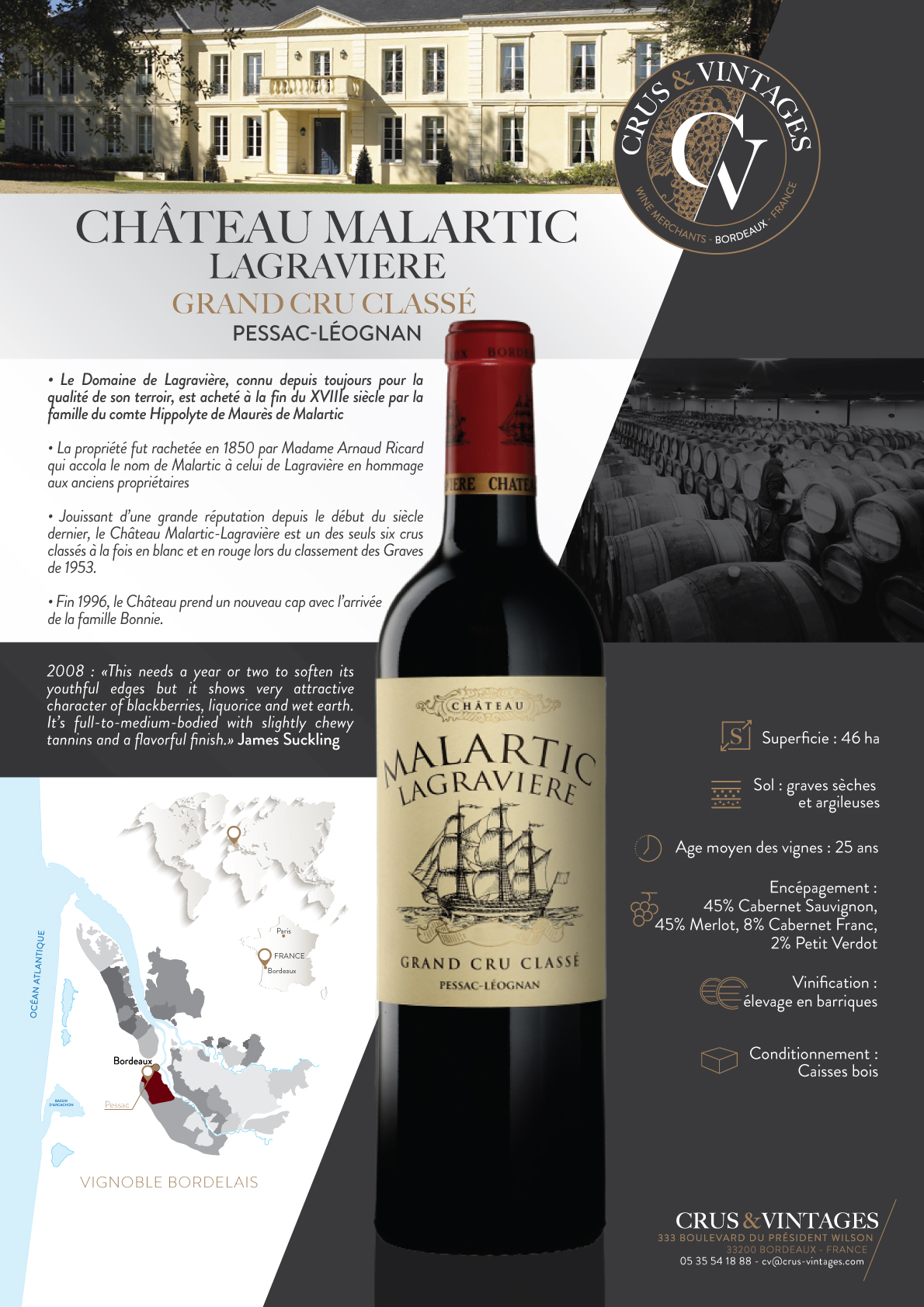 Domaine de Lagravière has always been renowned for the quality of its terroir, and was purchased at the end of the 18th century by the family of Count Hippolyte de Maurès de Malartic.