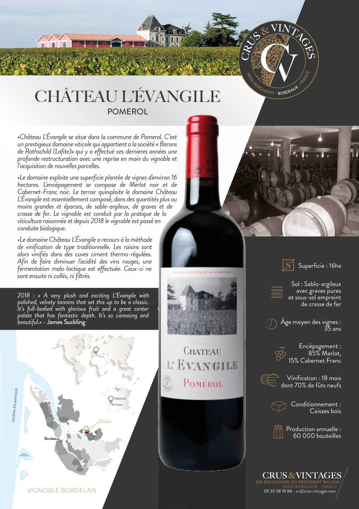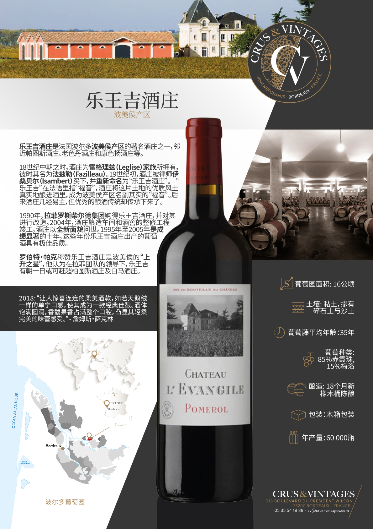 L'Evangile酒庄位于波美侯公社。 它是 属于 "Barons "公司的著名葡萄种植园 德-罗斯柴尔德(拉菲)",他在过去的几年里一直在建立一个 深刻的结构调整,重新回到葡萄园和 购置新的地块。